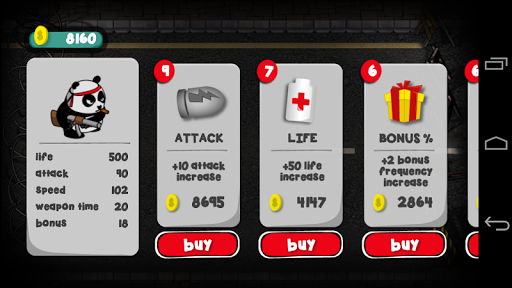 ★ Unlimited power ups to equip your panda, RPG style: use the coins you win in every play to improve Rocky the panda skills and unlock special weapons.