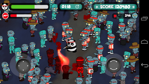 Panda vs Zombie: Elvis rage is a top-down survival game featuring beautiful pre-rendered 3D graphics, smooth controls and highly engaging mechanics. You control Rocky the panda to kill the zombie hordes constantly coming to you, with the aid of multiple weapons and bonus.