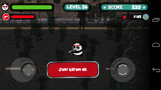 Everyone in the neighborhood has gone zombie: zombies in the cemetery, zombies in the street, zombies in the countryside, zombies, zombies, zombies. And not just the peasant: undead basketball players, undead priests. Our neighbors emerge as the undead hordes of doom and we are their prisoners. With such crave for human meatloaf the butcher of the neighborhood went broke (and undead too). Even Elvis, the King of rock and roll has changed his meatloaf recipe. Who’s to save this disaster? Rambo? Nope, zombie already. Chuck Norris? Sorry, brainless. All we have left is this tough, genetically modified panda warrior: Rocky the panda. A panda? You sure? No cute stuff here, Rocky the panda will finish up every undead or weird looking guy around. It's Rocky or zombie Elvis, it's rage time. Zombie rage time.