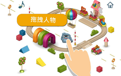 座火车,停在车站,在滑梯上滑下来,在沙滩寻找宝藏,坐飞船飞到星星上,把碎片放在一起拼成图片......
