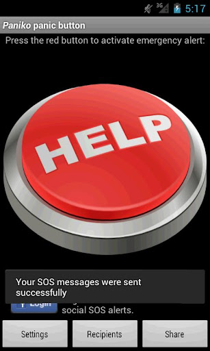 When you need it, by just pressing the red button on the main screen, your geographic location will be determined and all necessary alarms will be generated to transmit information about your situation to your contacts. Paniko can also use social networks to publish these alerts so that they are seen quickly in your community and your group.