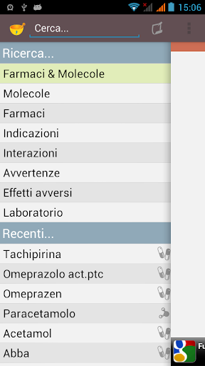- RICERCA LIBERA: semplicemente digitando una o più parole, è possibile cercare tutti i farmaci che le contengono in Indicazioni, Interazioni, Avvertenze ed Effetti Avversi.