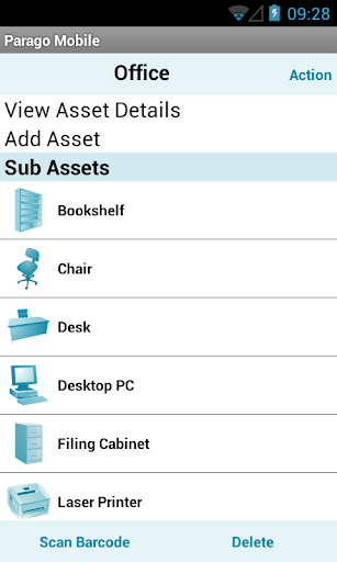 The application enables you to identify which location you are at right down to the individual room by the utilizing a virtual image of your organization or site. Assets can be discovered and identified by barcode and/or picture. The discovered assets can then be matched against a product icon and will be automatically placed within the location. Extra information about the asset can also be added through the Parago Mobile application.
