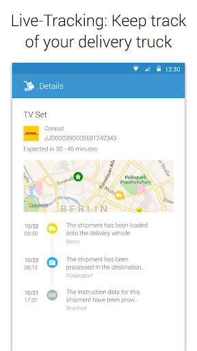 ParcelTrack integrates all of your shipments from different delivery services into a single app. Free Push-Notifications keep you up to date with your delivery status. The ParcelTrack Inbox makes it even more convenient to track your packages.