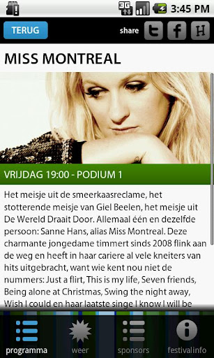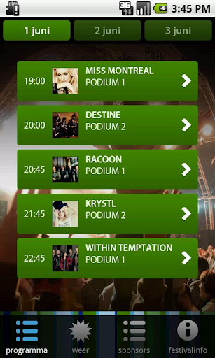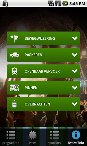 Maak gebruik van de Parkfeest app om op de hoogte te blijven van het programma van dit 3-daagse festival in Oosterhout. Ook voorziet de app je van allerlei praktische info over het festival zoals een up to date weersvoorspellingen en acties van sponsoren. Deze app is dus niet te missen op je telefoon tijdens het Parkfeest in Oosterhout.