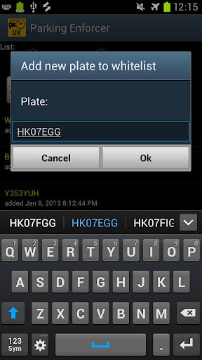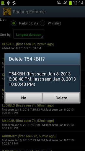 (6) The name of the log and whitelist CSV files can be configured via the 'Settings' menu, and both files are stored on your SD card. To display or edit those logs using the app, tap the 'Lists...' button or choose 'Manage Lists'. The list of vehicle registration codes can be sorted and displayed using different criteria.