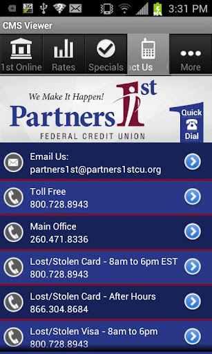 Partners 1st Federal Credit Union is a non-profit, full-service financial organization that serves various employee groups, their family members, and several community areas.