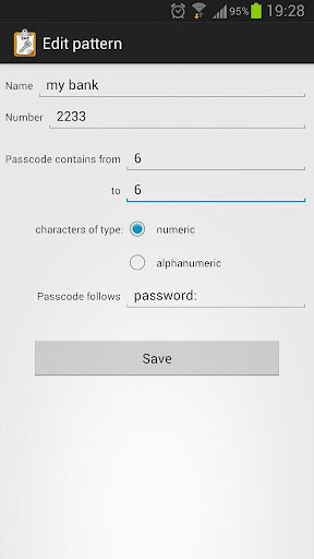 This application automatically copies disposable password/code from SMS message to clipboard. Now you don't have to leave bank web page to check SMS for password/code. You can paste it directly to a form just after receiving message from your bank. Use disposed SMS to configure new message pattern and don't bother retyping password/code ever again.