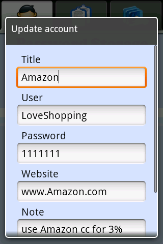Just switch from Blackberry to Android phone ? Love your Blackberry Password Keeper app ? Let us Introduce our Password Storage app. It is similar to Blackberry Password Keeper which provides a centralized location to store critical account information. You create one master password and within the Password Keeper client you can add multiple accounts containing account/login information for the various sites/services you frequently use.