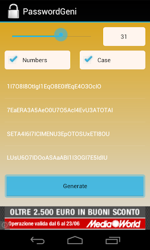 For this purpose we have made PasswordGeni, a small and free app for the random password generation.