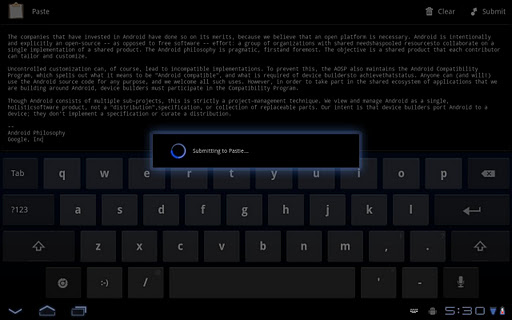 Both phones and tablets are supported. Paste includes an interface optimized for tablets running Android 3.0.