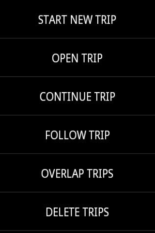 START NEW TRIP - Start recording new trip using this option. Enable GPS before go for this option. First location calculation may take couple of minutes. After that, it will track you continuously