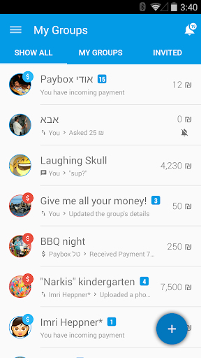 -פתיחת קבוצת תשלום ואיסוף כסף מחברים, צ'אט לכל קבוצה, אפשרות להעלות קבלות ותמונות