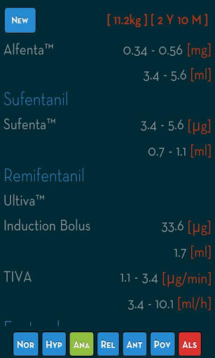 With this tool you will know all important physiological values for the particular age and weight of your patient as well as mask and tube sizes. All relevant drugs for intravenous anesthesia available in the United States are included with dosing information for your special patient.