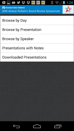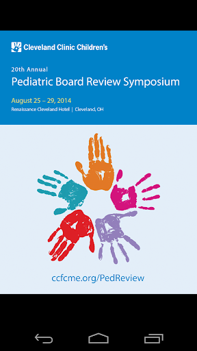 The Cleveland Clinic Pediatric Board Review 2014 mobile application allows you to view the course schedule, browse presentation and faculty details, and access available presentations for the Pediatric Board Review.