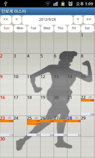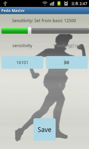 pedometer, set sensitivity, walking count view in calendar,