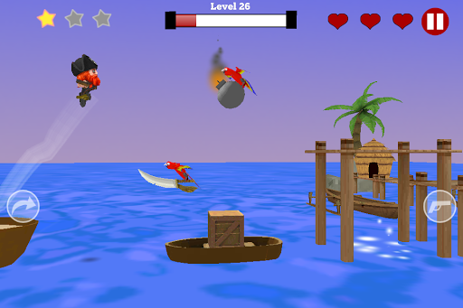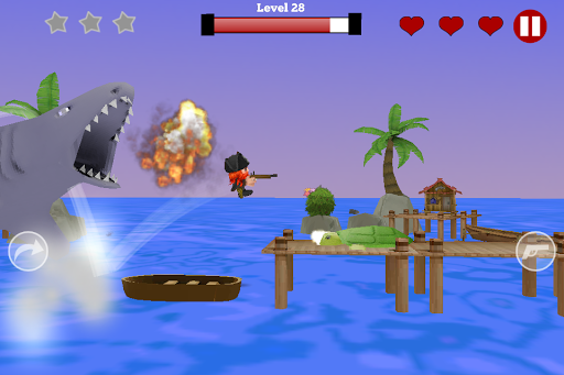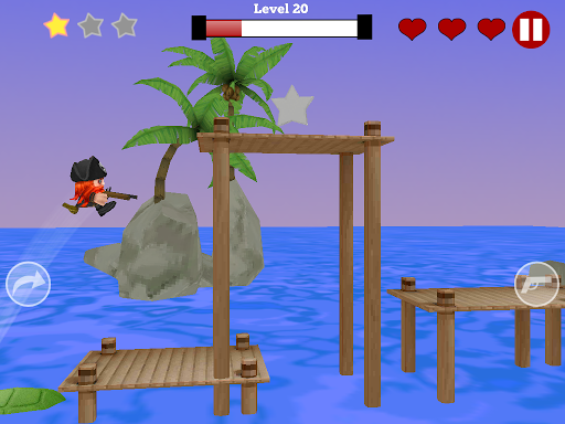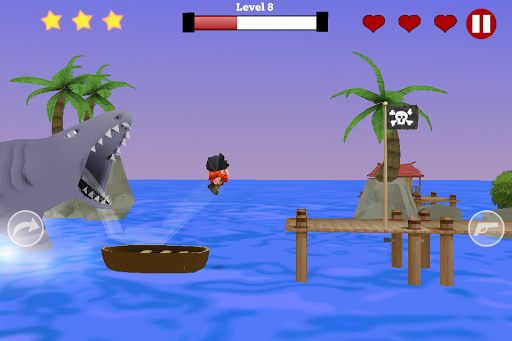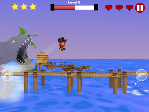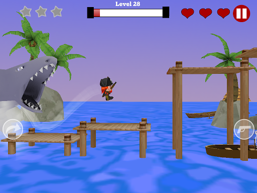 Peg Leg Run is a shark-jumping, bullet-dodging platformer game! Jump and shoot your way past skeletons, angry parrots, and giant sharks to reach the treasure!