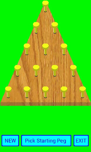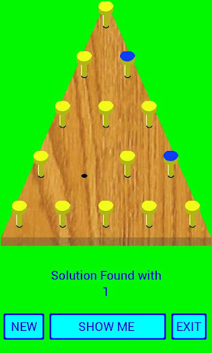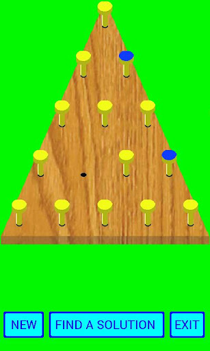 Play and Solve, or let the game find a solution for the 15 peg board game. After a starting peg is selected, movable pegs are high lighted in blue. Select a peg to move and drag it to another spot over a peg to be removed. Object of the game is to have one peg remaining after the last move.