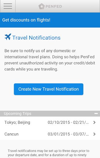 Need an ATM? The app will help you find one. Forgot to set a travel notification for your PenFed credit card? Do it right in the app -- from anywhere. Want to buy a home? Don't miss our exclusive real estate rewards and other current offers.