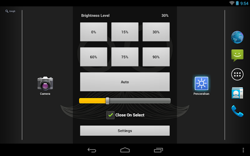 Pencerahan Brightness is an android application, which allows you to easily adjust screen brightness. You can increase or decrease the screen brightness without the need of searching into the Settings-Display menus.