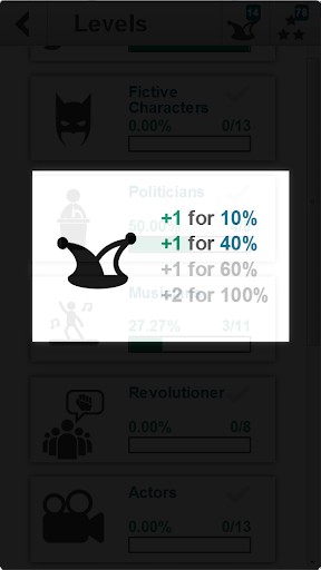 Egal, ob Du fußballbegeistert bist, politische Bildung suchst oder einfach nur die Promis dieser Welt erraten möchtest... mit People Quiz ist das jetzt kein Problem. Und wenn Du mal Hilfe brauchst, dann kannst Du Joker einsetzen, die Dir entweder mehr Zeit verschaffen, dir eine 50:50-Chance geben oder Dir die komplette Lösung geben.