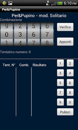 Indovina una combinazione di 4 diversi numeri nel minor numero di tentativi e carica i tuoi risultati in classifica.