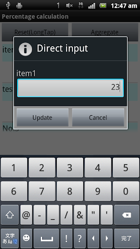 The numbers can also directly input, input menu appears on the screen by a long tap numbers.
