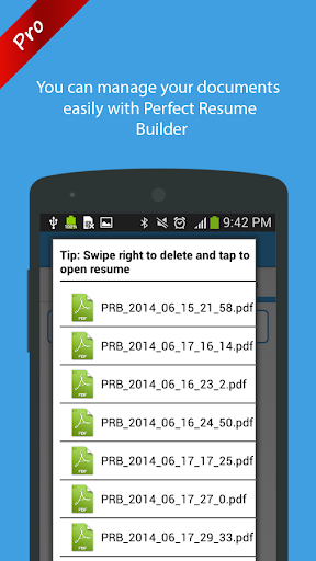 • Delete resume directly from app by just right swipe and it will automatically delete from SD card