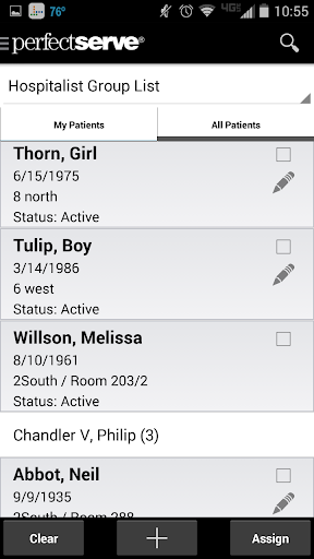ASSIGN PATIENTS: View inpatients assigned to your group and manage which provider is caring for each of those patients. Quickly and easily reassign patients to a different provider in your group so calls and messages route appropriately when Patient-Centered Routing is being utilized.