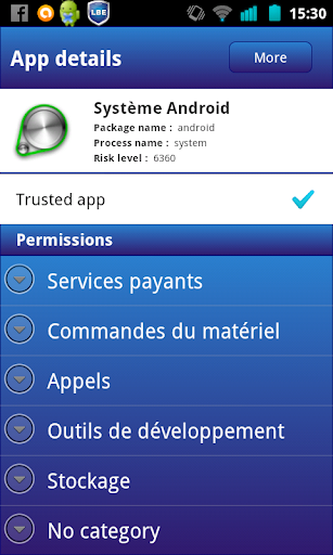 Elle permet d'obtenir une liste exhaustive des packages installés sur le téléphone ainsi qu'une liste exhaustive de leurs permissions respectives.