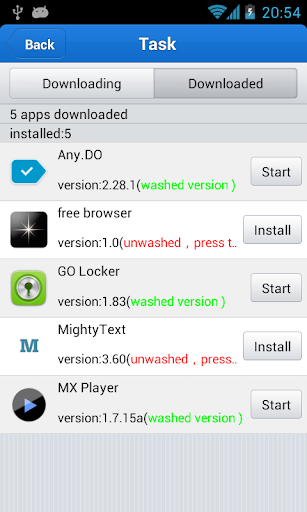 This product is based on a special technology which is called “app-clean”, we through cleaning the apps to make you be able to manage the permissions. If apps are “not cleaned”, Permission Guard will not be able to control them. So, you should clean it first. Cleaned apps will be managed in the “washer” which can wash the installed apps or the apps installation package. This process need you keeping connecting with the internet and it may take several minutes.