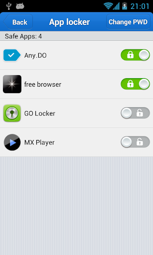 App locker is a function to keep certain app private. You need to set a password (which is used to open the app from the system) so that anyone who pick up your mobile will not see any private information.