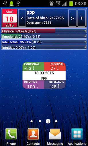 ► Choosing the current date (by pressing the button at the top of biorhythms chart)