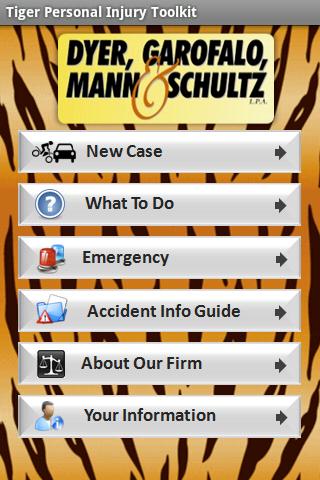 Knowing you have the Tiger at your fingertips can help put you at ease after you’ve been injured. The Smart, Tough Attorneys at Dyer, Garofalo, Mann & Schultz know that the sooner you can obtain legal help, the better. This free mobile application was developed with that in mind. Download the Tiger Personal Injury Toolkit today and let us fight for you! With offices conveniently located from Lima, Ohio to Richmond, Indiana, we’re here for you when you need us.