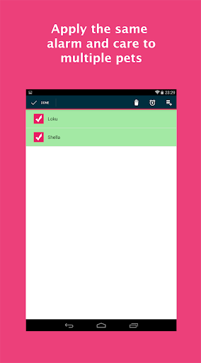 * Define alarms and scheduling for different cares for your pets.