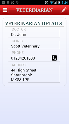 - Record veterinarian details and emergency calls shortcut key