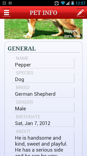 Pet Profile allows to create a profile and track all the information for your pets or animals,e.g. Dog, Cat, Amphibian, Bird, Fish, Horse, Rabbit, Raptile and other. With this apps you can now easily remember or even share all your pet's information with your friend or through social networks.