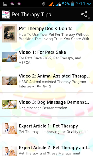 The Pet therapy has effective intervention strategies to treat psycho-physics pathologies as well to improve life quality. Animals represent ethereal molecules capable of stimulating the release of neurotransmitters and various endogenous peptides with several mechanisms of action, mainly of emotional type, that promote an interconnection between affective and biological spheres, modifying the neuro-endocrine axis, and determining, through the biochemical-nervous pathways, the attainment of a state of well-being: eucenestesis.