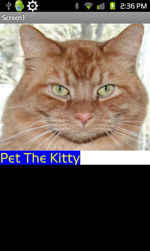 This is just a test app. All credit for building this app goes to Google App Inventor tutorials though I modified this to use a "Canvas" rather than a button so I could use a screen swipe to make the kitty purr. poking it makes it meow.
