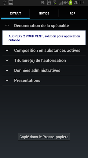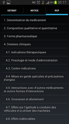 - L'extrait : un récapitulatif des données du médicament demandé (aussi appelé spécialité).