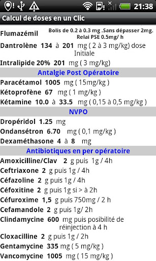 Hypnotiques , Curares , Morphiniques, Antidotes, Médicaments de l'urgence, AiVOC , Anesthésiques Locaux, NVPO, Calculs de doses en 1 Clic,Normes de laboratoires, Halogénés et calcul de CAM,équivalences médicamenteuses,Antibioprophylaxie, Anti hypertenseurs, Antalgiques ....