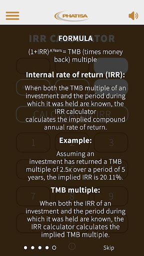 Tilting the device horizontally will display a static IRR table to contextualise your calculation;