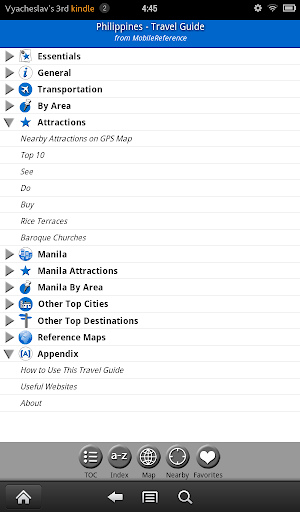 MobileReference Travel Guides provide detailed, practical information about attractions, landmarks, transportation, cultural venues, dining, lodging, history and much more. They are indexed alphabetically and by category, making it easier to access individual articles. Attractions can be viewed on an offline GPS map along with your current location so that you can easily find attractions near you as you explore the city.