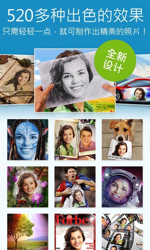 界面简洁,可便捷地制作效果,定能让您爱不释手。您无需进行裁切或调整。只需选择效果或相框,中选择照片(或使用手机照相机拍摄一张新照片),弹指之间,您就可以获得一张独一无二的蒙太奇或拼贴照片!Pho.toLab包含:-照片蒙太奇,带自动面部识别。只需轻轻一点,就可将自己扮演成宇航员、中世纪骑士、帮派分子或美丽仙子!-照相写实效果。将您的脸放在广告牌或纸币上;将您的照片放进古书,或将其喷到时尚小车上。-照片过滤器。霓虹灯光、火光、粉笔画与木炭画、HDR、铅笔画、油画与印象派绘画、拼图等。-杂志封面,专为野心家和时尚人士定制。将您的照片放上《福布斯》、《时尚》或《花花公子》,体验当一次知名人物的感觉!-头饰。试试国王的皇冠、精灵帽、圣帕特里克节日帽或最热门的圣诞帽!-多幅照片拼贴。将您和亲密恋人,或是所有朋友们的照片放在一起,制成一张拼贴照片。大多数效果可让您在照片上添加自己的文本。文本风格为每种模板而专门设计。最后,您可以将大作保存,轻松地在Twitter、Facebook、Instagram上共享,或将其作通过消息发送给好友。Pho.toLab包含将近500种效果,适合各种需求。但如果您还有其他需求,请随时向我们建议!欢迎您对照片效果、过滤器、相框、照片拼贴及其他您能想到的方面提出建议!我们乐于根据您的想法创造出新的效果!