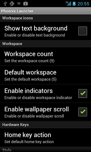 - Choice between 2 hardware home key actions (workspace overview and "snap to default workspace")