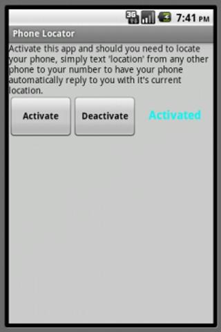 Quite Simply a must have App to keep activated on your phone incase it gets lost or stolen or simply misplaced. With this App activated, simply text your missing phone with a key word and your phone will automatically reply with its current address and geotag link to map directly to its location.