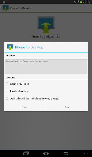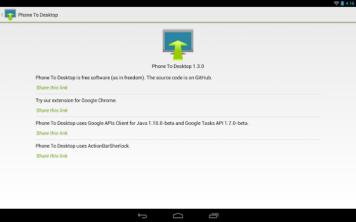 PhoneToDesktop sends links and text from your Android device to your desktop computer. It's Chrome to Phone backwards.