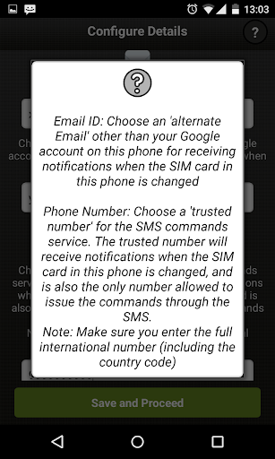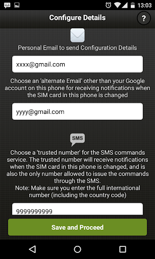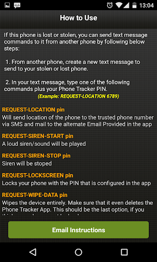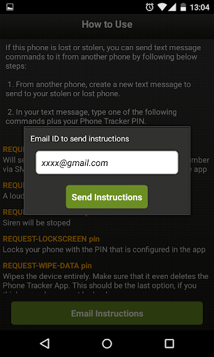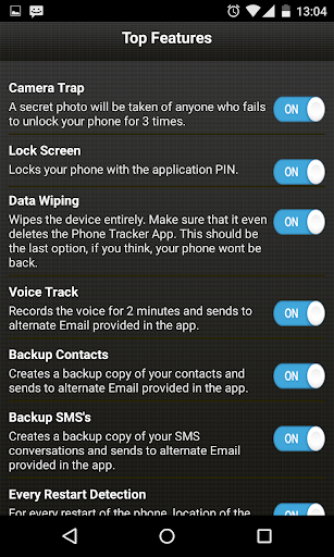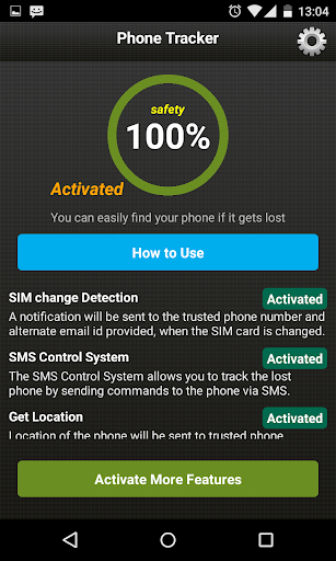 Will send location of the phone to the trusted phone number via SMS and mail to the alternate Email Provided in the app