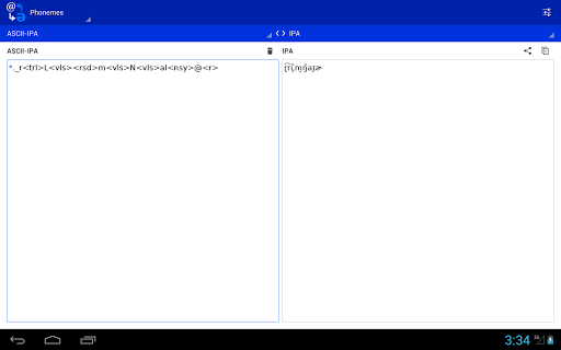 ◆ Send the converted phonemes to the Messaging app or any other app that supports receiving shared text.