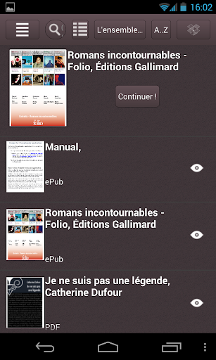 PHONEREADER est compatible à la fois avec le format EPUB et PDF, supporte la solution DRM d'Adobe et intègre directement un accès au PHONEREADER STORE pour vous permettre l'accès à de nombreux titres gratuits (domaine public et créations originales) ainsi qu'à tous les ebooks faisant l'objet d'une critique dans la presse ou sur le web (sites spécialisés). Après votre première acquisition, vous accédez à 2000 titres offerts prêts au téléchargement dans l’application.